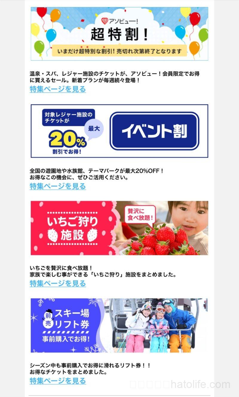 アソビューでは期間限定のオトクな割引プランがたくさんあります。