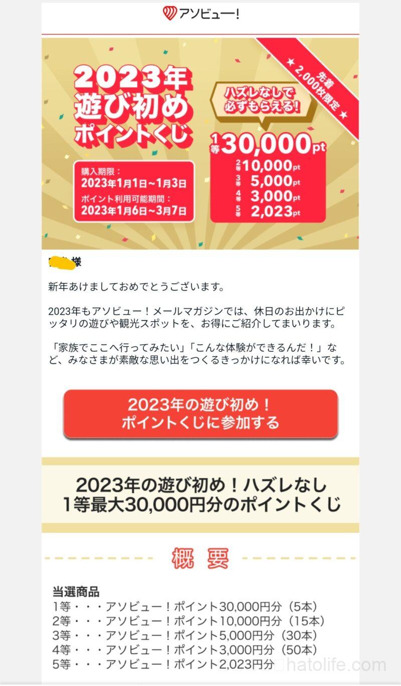 こちらは先着2,000枚限定のハズレ無しのポイントくじ。