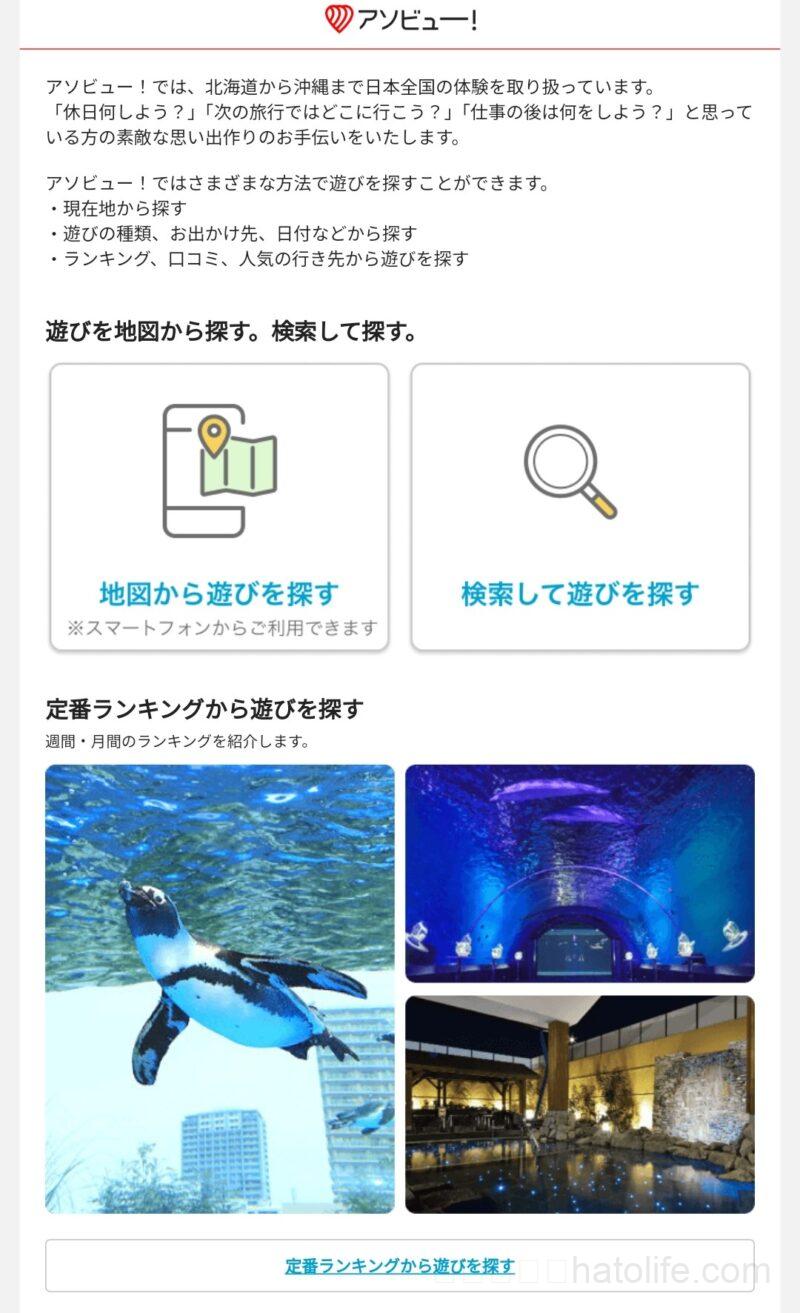 お出かけするときにアソビューのサイトからチケットを購入すると、割引クーポンや、割引価格でオトクに利用することができます。