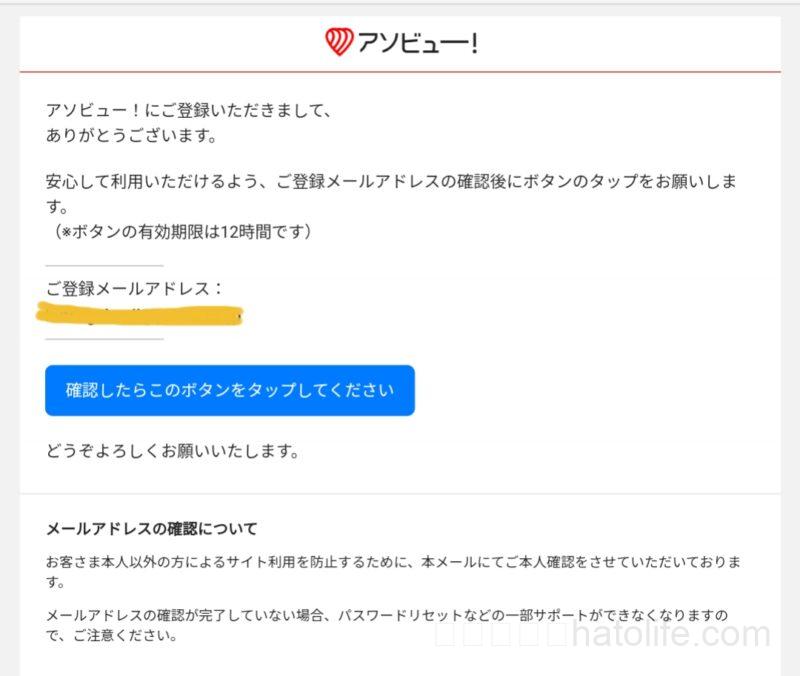 クーポンのメールとは別にメールアドレスの確認のメールが届くので、青いボタンをタップします。