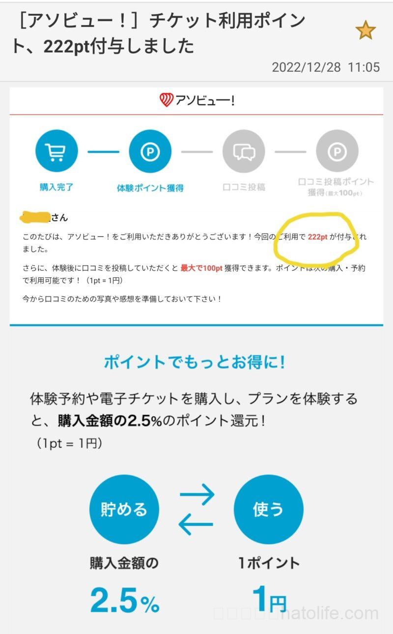 体験後に口コミを投稿すると最大100ポイント獲得できます。