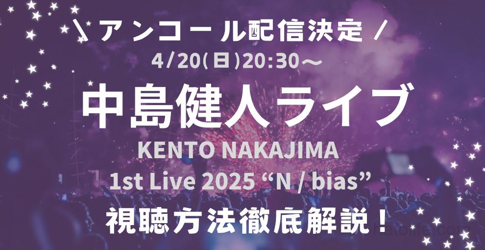 4/20(日)20:30~に放送される、中島健人ライブ『KENTO NAKAJIMA 1st Live 2025 “N / bias”』の視聴方法をお伝えします。