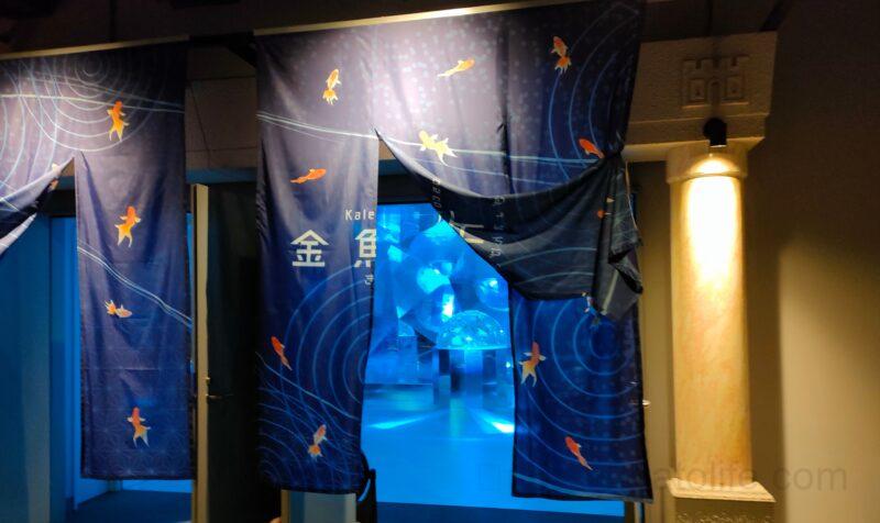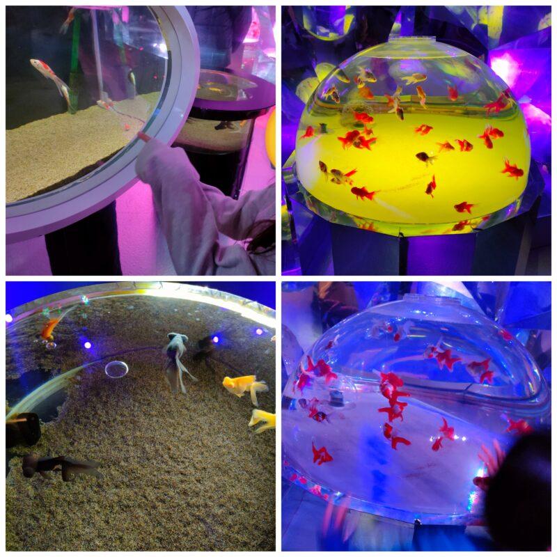 色鮮やかな金魚達が鏡に映り込む神秘的な空間を作り出します。