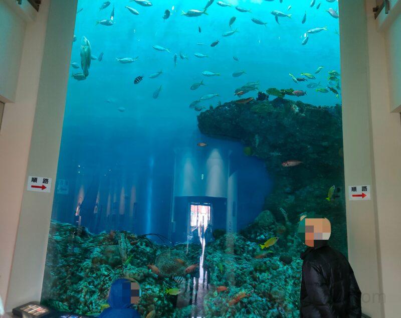 中に入ると高さのある大きな水槽、クリスタルタワーにいる魚たちが出迎えてくれます。