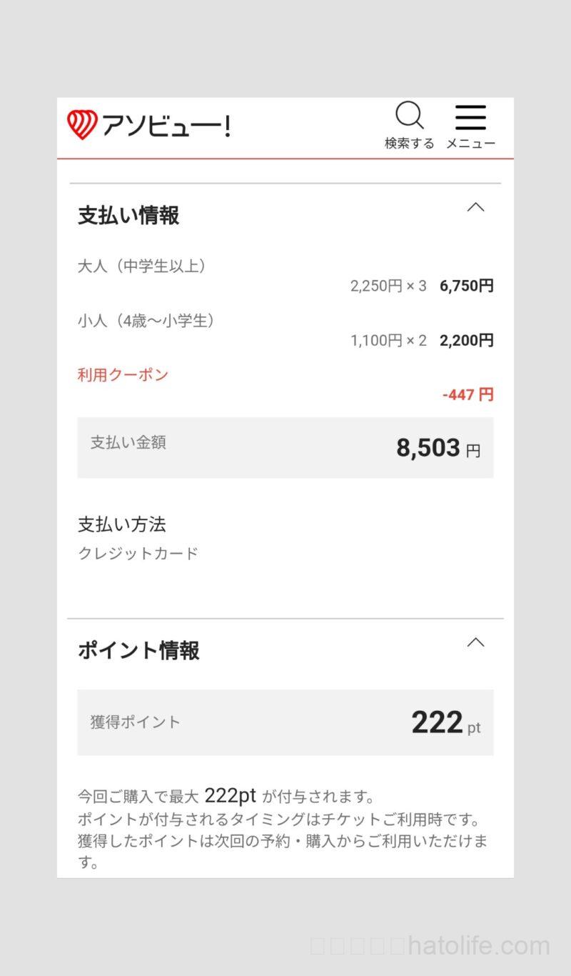アソビューというサイトからチケットを購入したら、割引価格で入場できました!