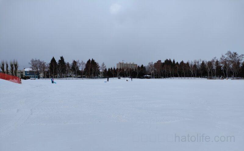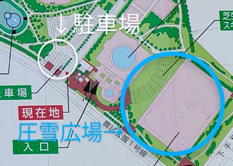 冬には農試公園の多目的広場(臨時駐車場)だった場所が、圧雪広場になるんです!