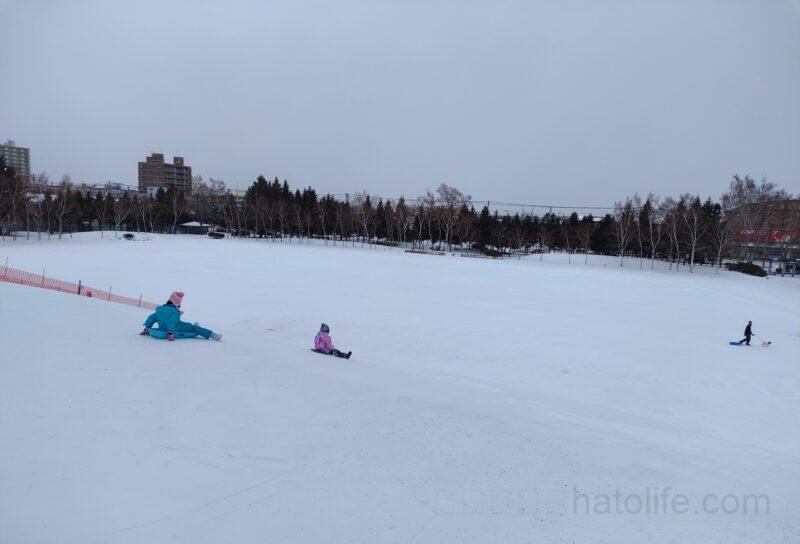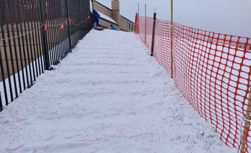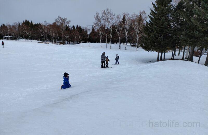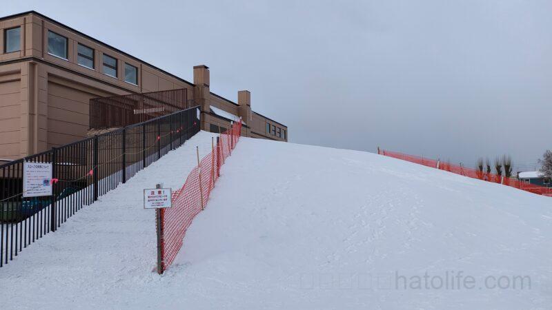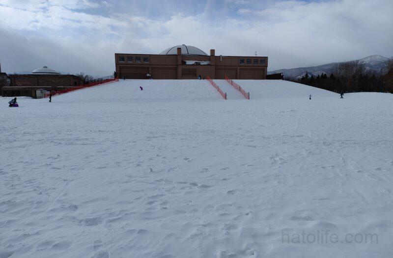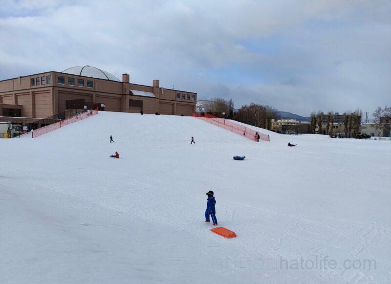とても広く高さもあるので、スキーの練習や、ソリ遊びができます。