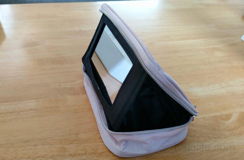 開け閉めしやすいダブルジッパーで、引き手にはブランドロゴが。